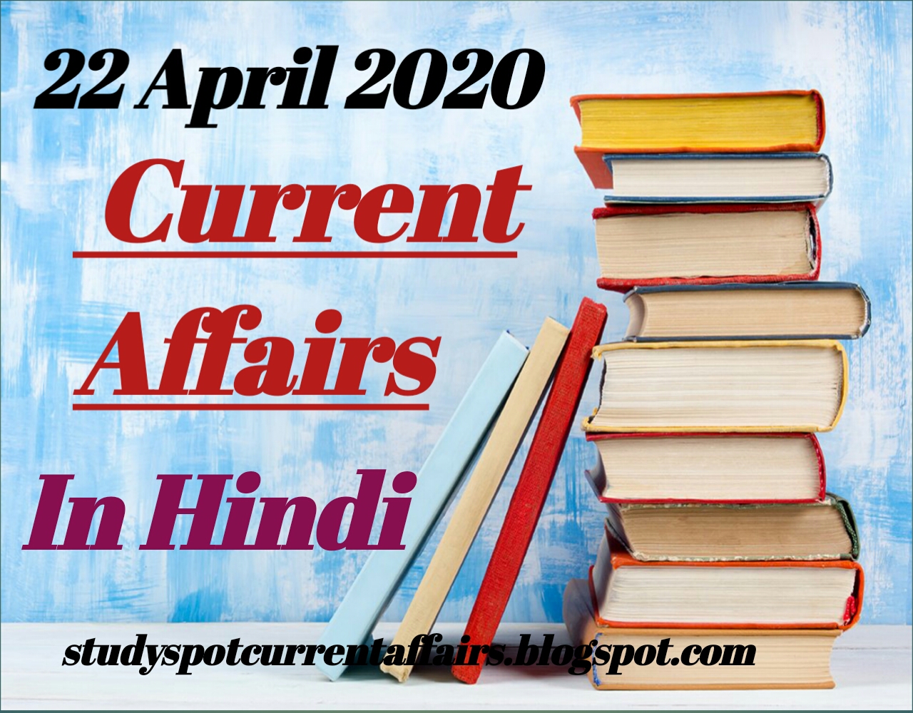 22 April 2020 Current Affairs In Hindi/करेंट अफेयर्स हिन्दी में